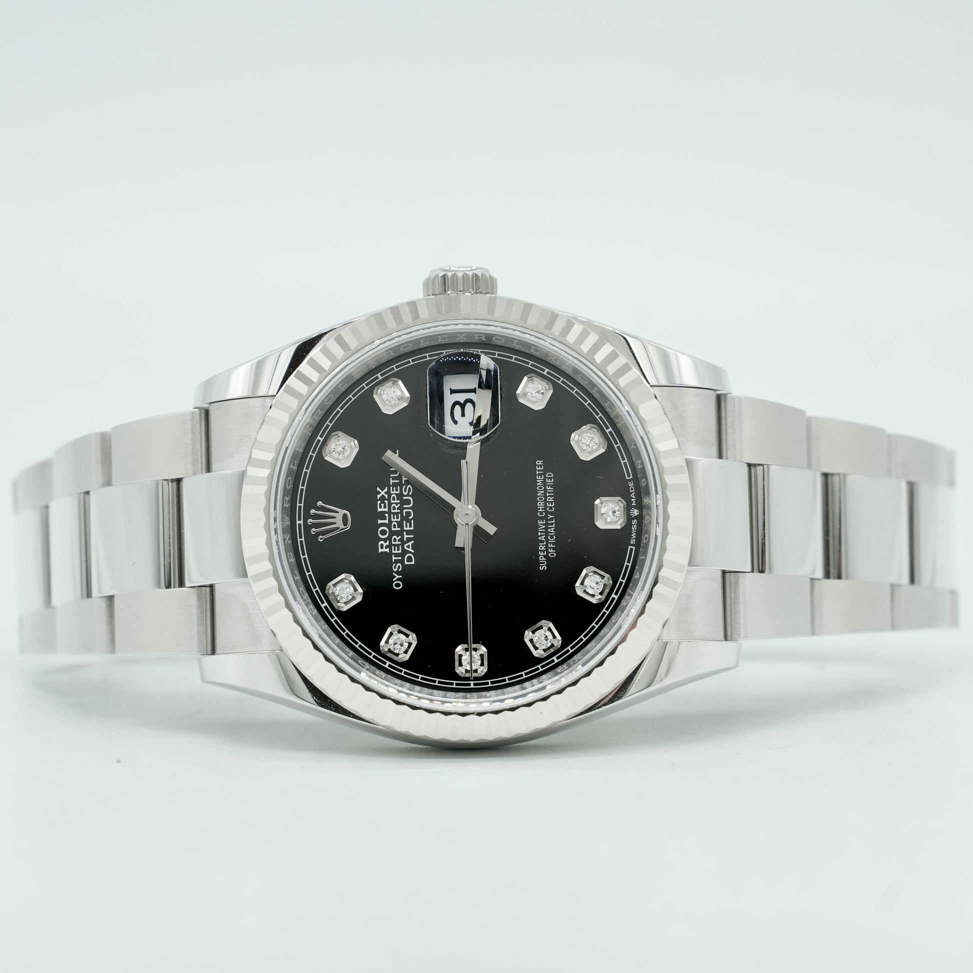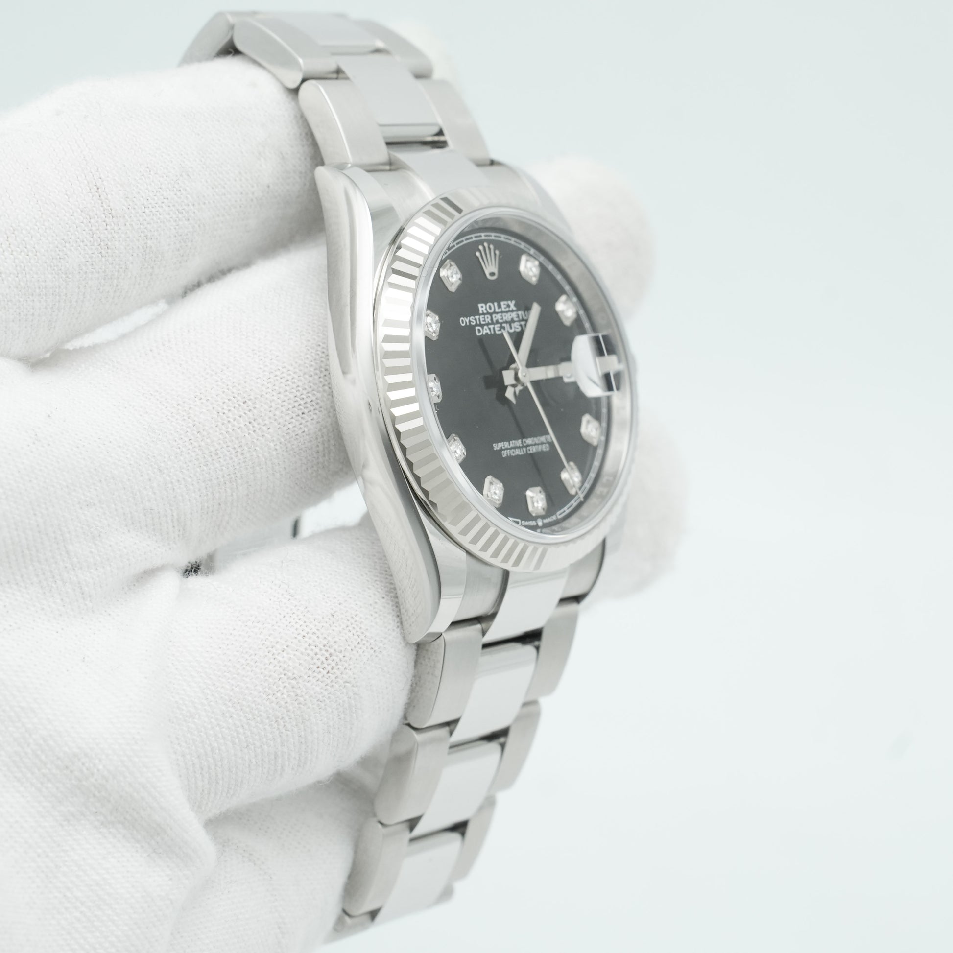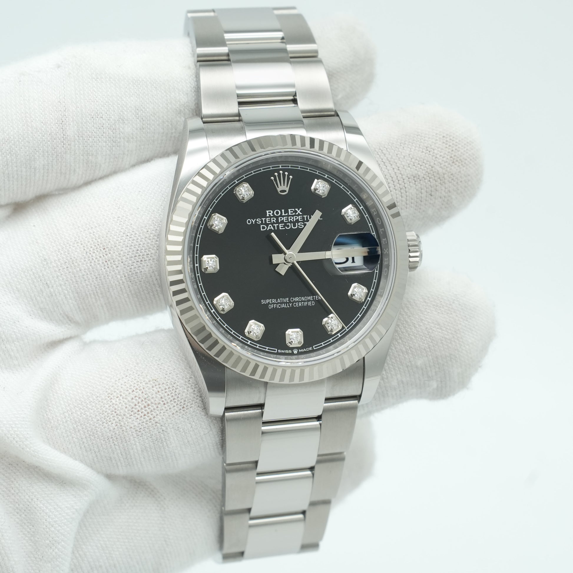 New Rolex 126234 Steel Datejust 36 Fluted Bezel Black Diamonds Dial B&P 2025
