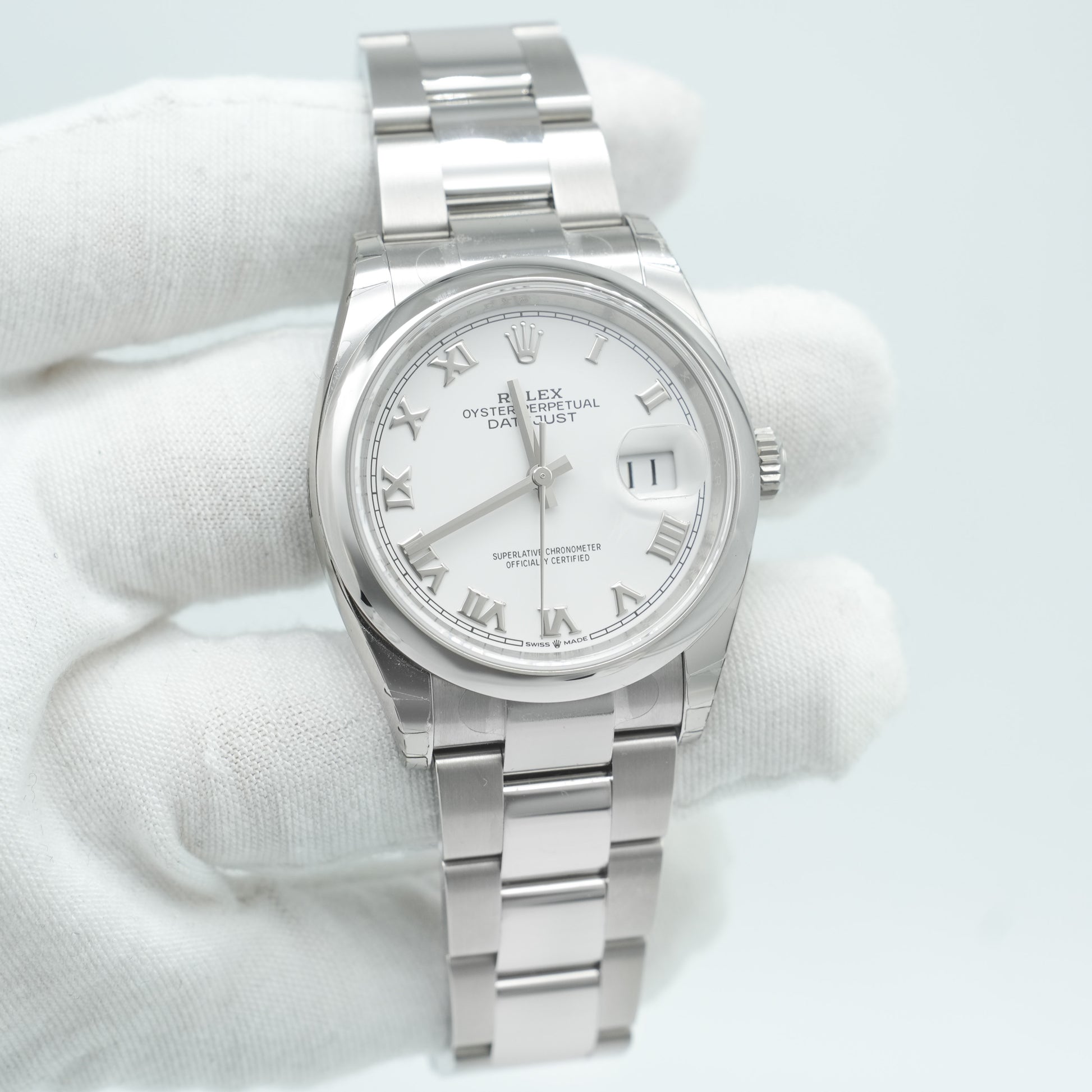 Rolex Datejust 36mm 126200 White Roman Dial Domed Bezel Oyster Bracelet