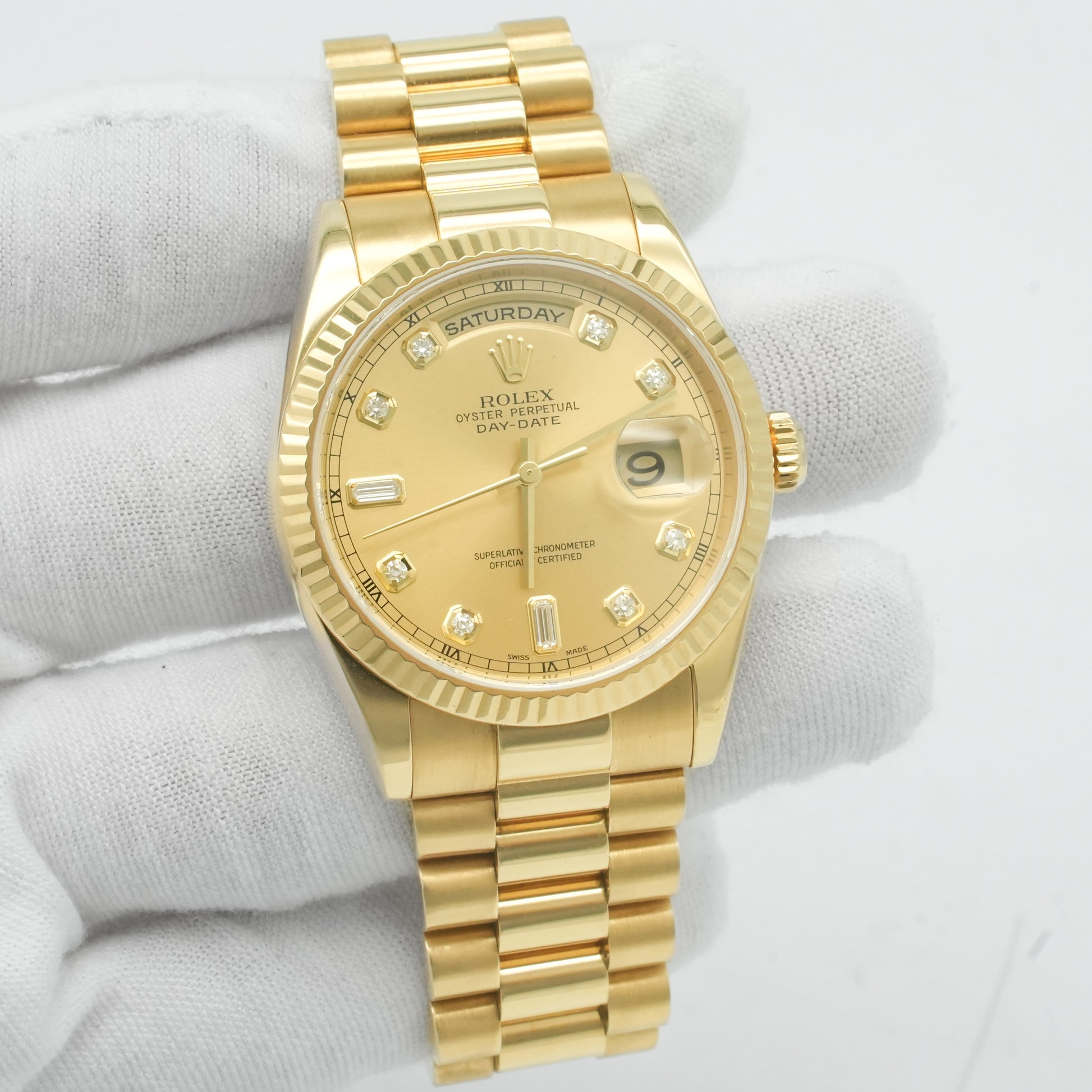 ROLEX Day-Date 36 118238 Yellow Diamond Champagne Dial